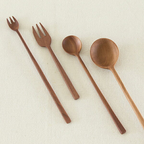 木のぬくもりを感じるカトラリーは手になじむデザイン。