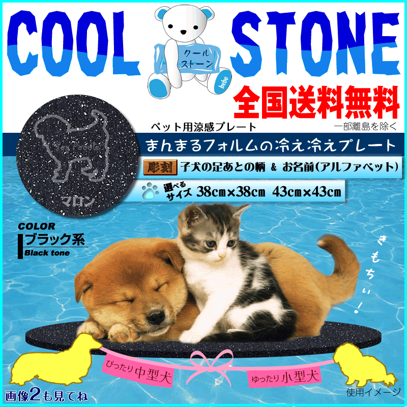 涼感プレート ドックシルエット ブラック サークル カタカナ名入 ペット・ペットグッズ犬用品・犬ベット・マットマット・プレート小型犬【楽ギフ_名入れ】