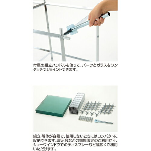 付属の組立ハンドルを使って、パーツとガラスをワンタッチでジョイントできます。