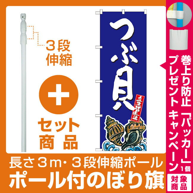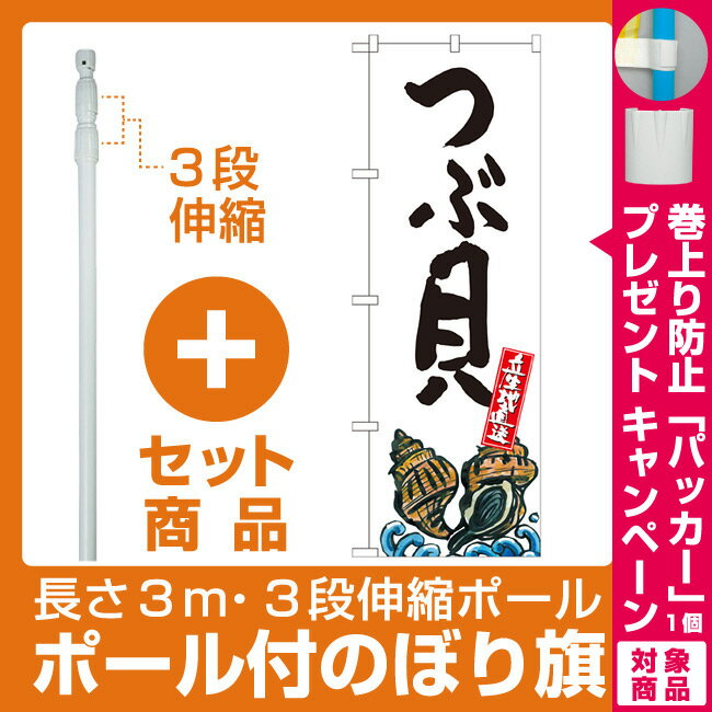 【セット商品】3m・3段伸縮のぼりポール(竿)付 のぼり旗 つぶ貝 産地直送 白 (SNB-2289)(寿司・海鮮/貝類(ホタテ・サザエ・アワビ、カキ))(貝類(ホタテ・サザエ・アワビ、カキ))(貝類(ホタテ・サザエ・アワビ、カキ))
