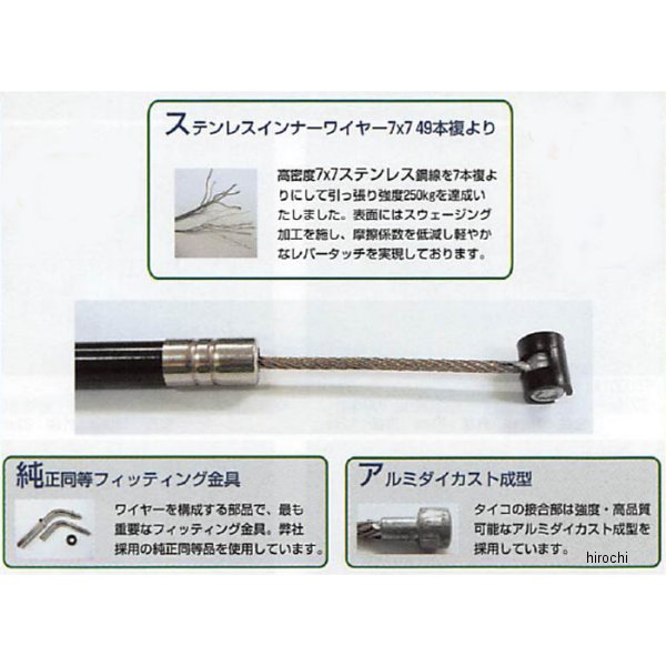 【特徴】アルキャンハンズの販売するアクセル、クラッチ、チョークの各種ワイヤーは、純国産という抜群の信頼性に加え、対応車種も国産オートバイ116モデル(約2,000種類)に及び、標準ラインナップ数としても国内トップクラス。