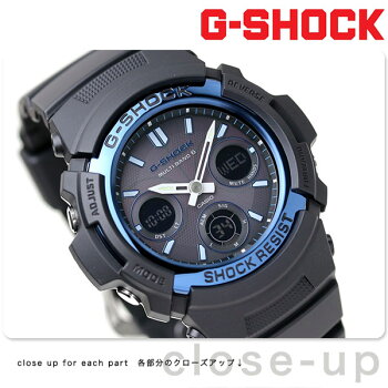 G-SHOCK 電波 ソーラー CASIO AWG-M100A-1AER アナデジ 腕時計 カシオ Gショック スタンダードモデル ブラック × ブルー 時計【あす楽対応】