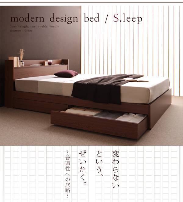 【500円OFFクーポン配布中】棚・コンセント付き収納ベッド S.leep エス・リープ ポケットコイルマットレス:レギュラー付き セミダブル (UL1)